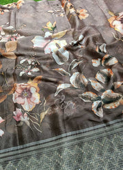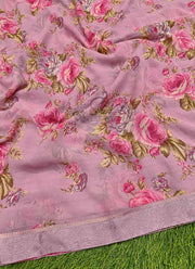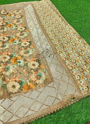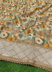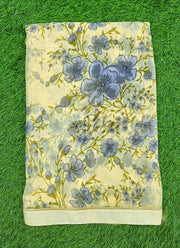 Lovely Floral Print Organza Saree in Frill