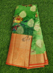 Beautiful Floral Printed Organza Saree with Kanchi Border
