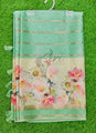 Description: Lovely Digital Print Soft Silk Saree in Self Zari Stripes Pattern