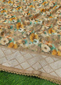 Description: Beautiful soft organza saree in pretty penoies floral design digital print and in embroidery work along the border with crochet style lace trim